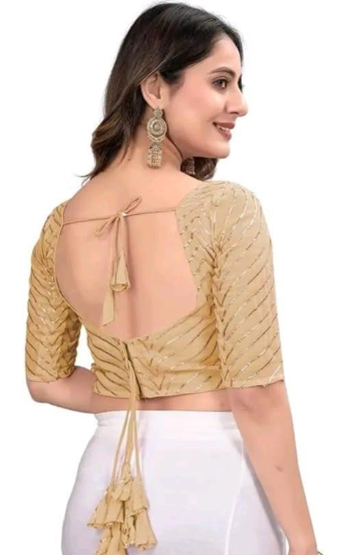 Georgette Designer Women Blouse with Gota Patti Lace|Back Design|Padded